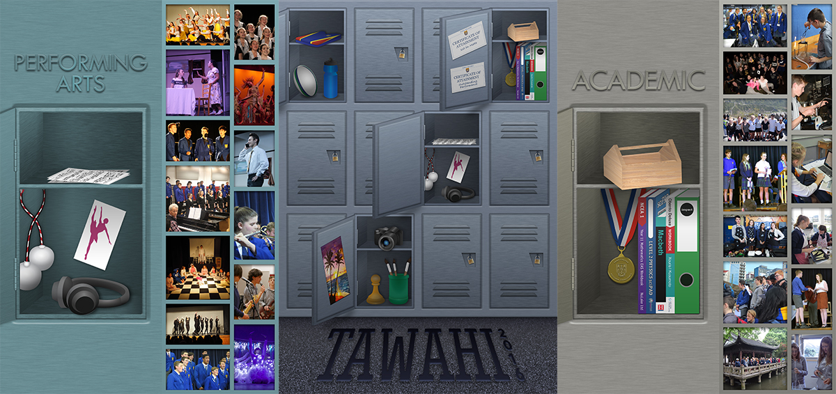 Skeuomorphic design using a locker metaphor for each section reinforces the focus on school life.